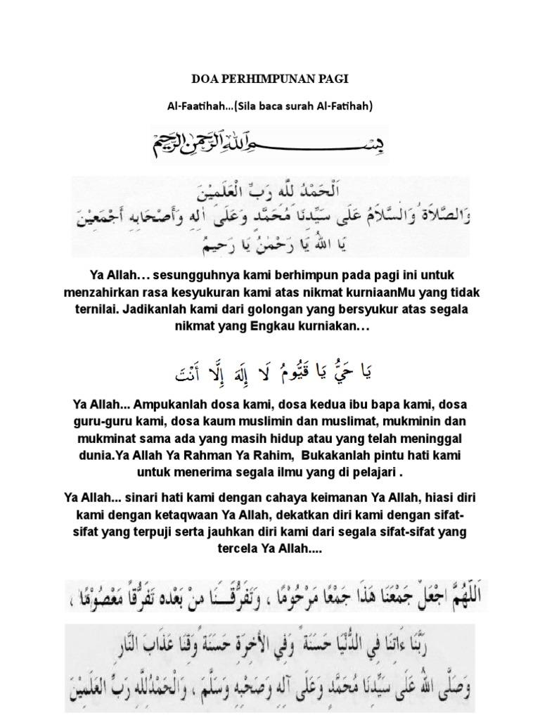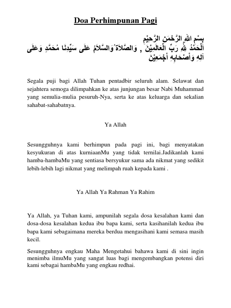 Contoh Doa Perhimpunan Pagi